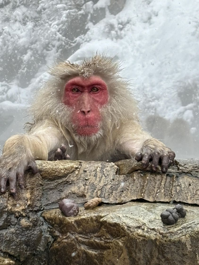 On the Sunday before youngest daughter was careering round Tokyo for the Tokyo Marathon, the climax of a two week visit, though she stayed an extra week afterwards so that he husband could go skiing and she could visit the snow monkeys. The picture is not of me, but one of the apes.