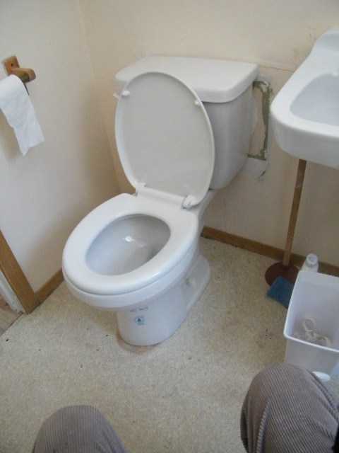 At fixing up the upstairs flush.